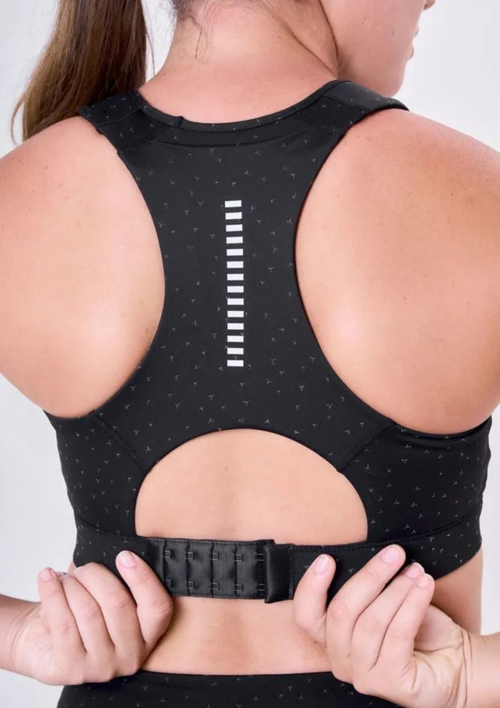 O top esportivo de alta sustentação GRIT Bossa Nadador com Bolso Ajustável Reflect é um equipamento com estampa refletiva que oferece uma visibilidade em condições de pouca luz. Indicado para quem busca um top antiflacidez e prefere o ponto de sustentação central.